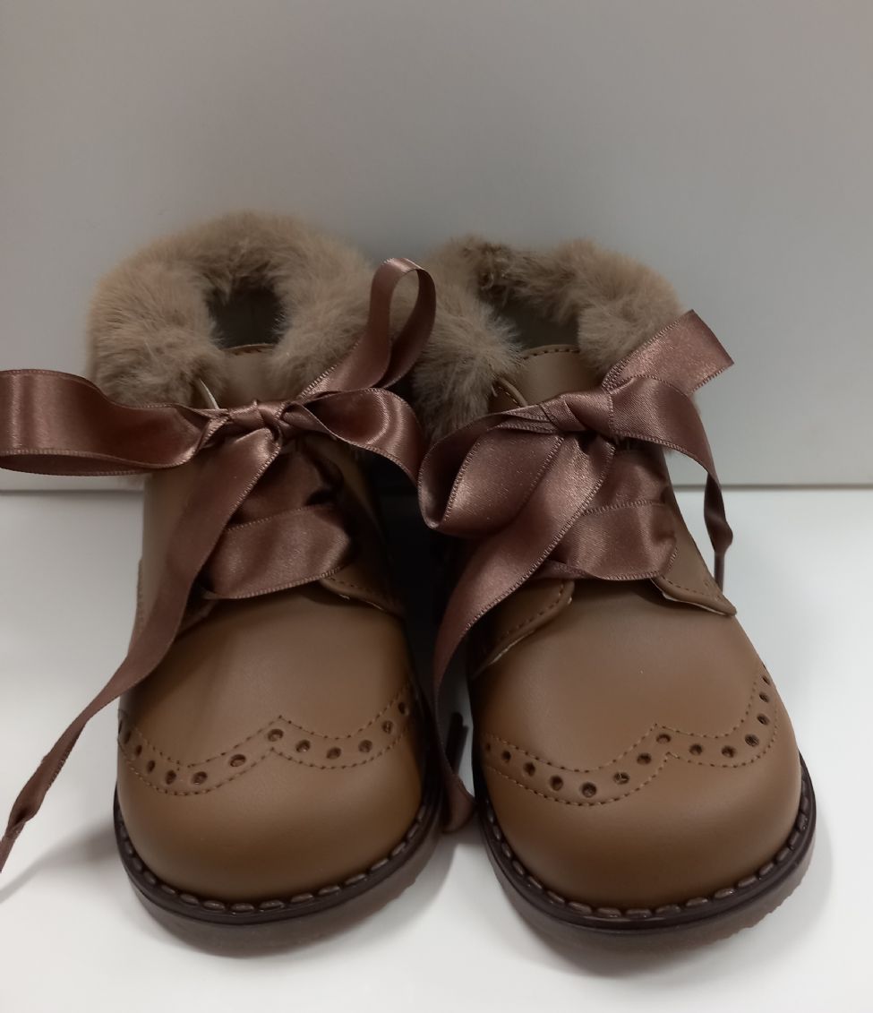 Bota de piel en con pelo por dentro en color visón.