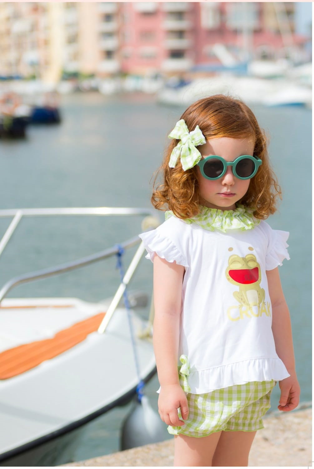Conjunto de niña en color verde con una rana.Pequeños Piratas.