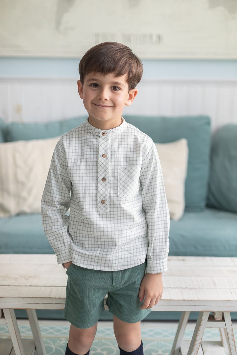 Conjunto deniño con pantalón corto en color verde y camisa de cuadros.