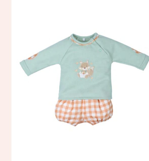Conjunto de dos piezas con pantalón corto en color verde con una ardilla.
