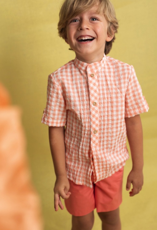 Conjunto de niño en cuadritos color naranja.Basmarti.
