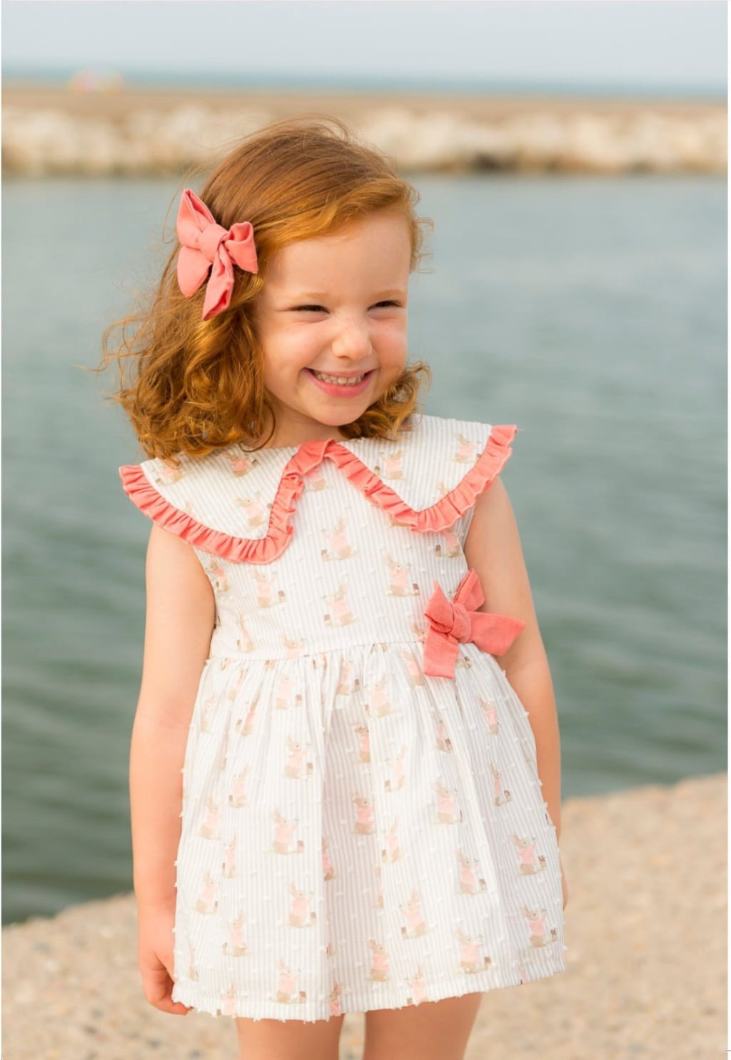Jesusito de niña en color salmón con conejitos.Pequeños Piratas