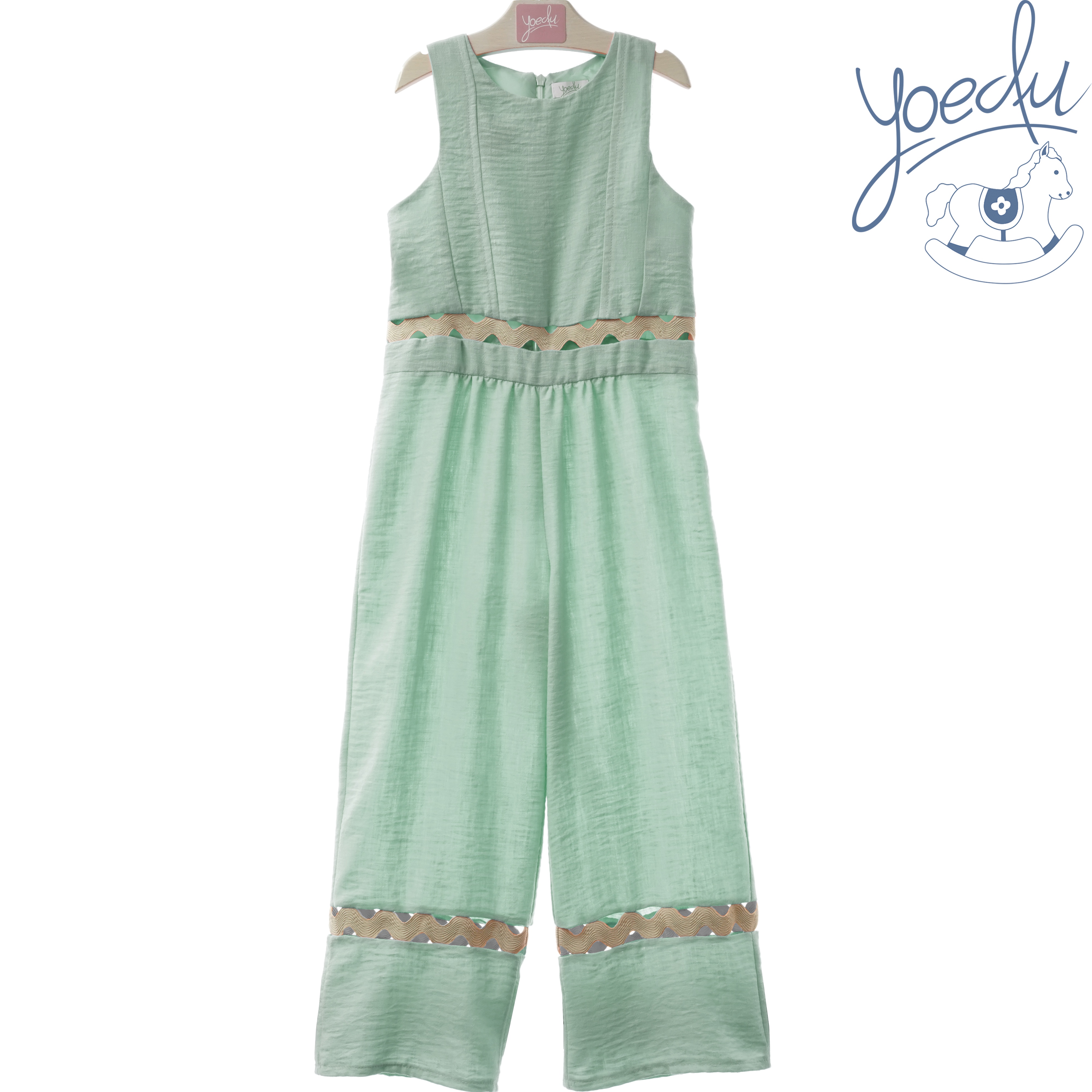 Mono infantil largo de tirantes en color verde.