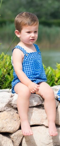 Ranita bebé de tirantes con cuadritos en color azul.