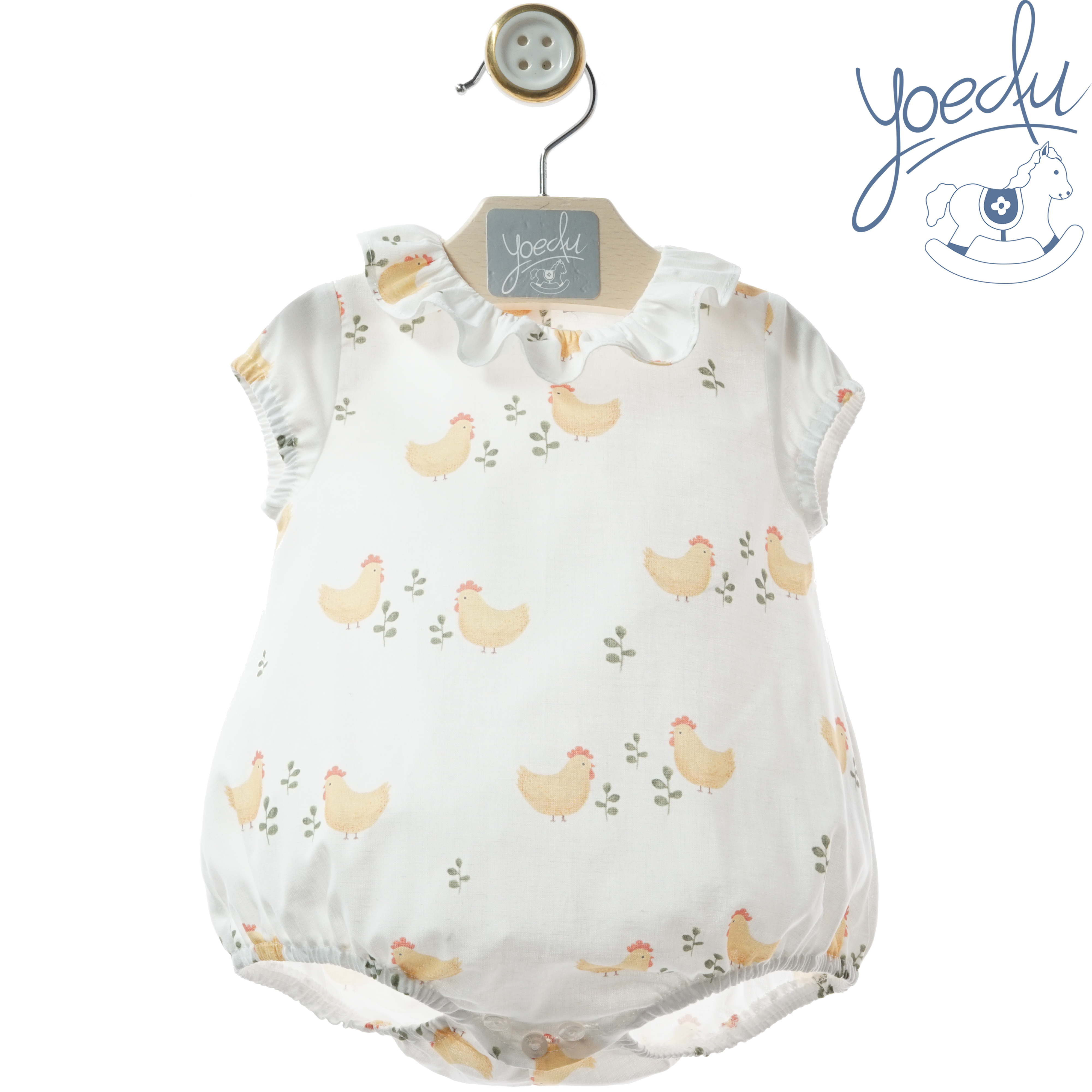 Ranita bebé en color blanco con pollitos en color amarillo.