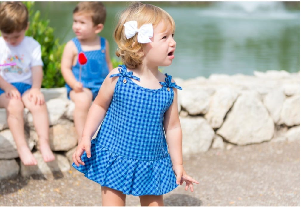 Ranita de niña con volante de cuadros en color azul.