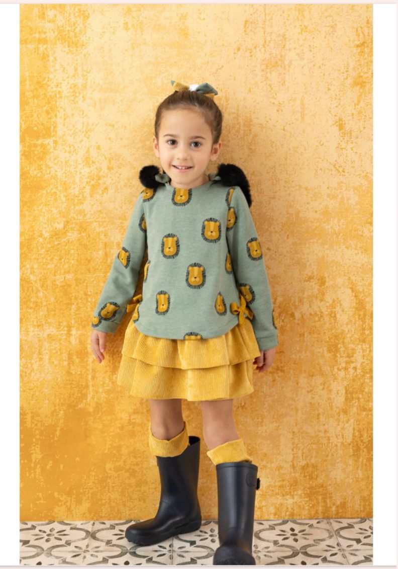 Vestido en color verde con leones.Basmarti.