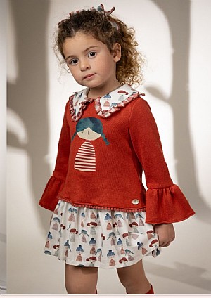 Vestido infantil con estampado de muñequitas.Basmarti.