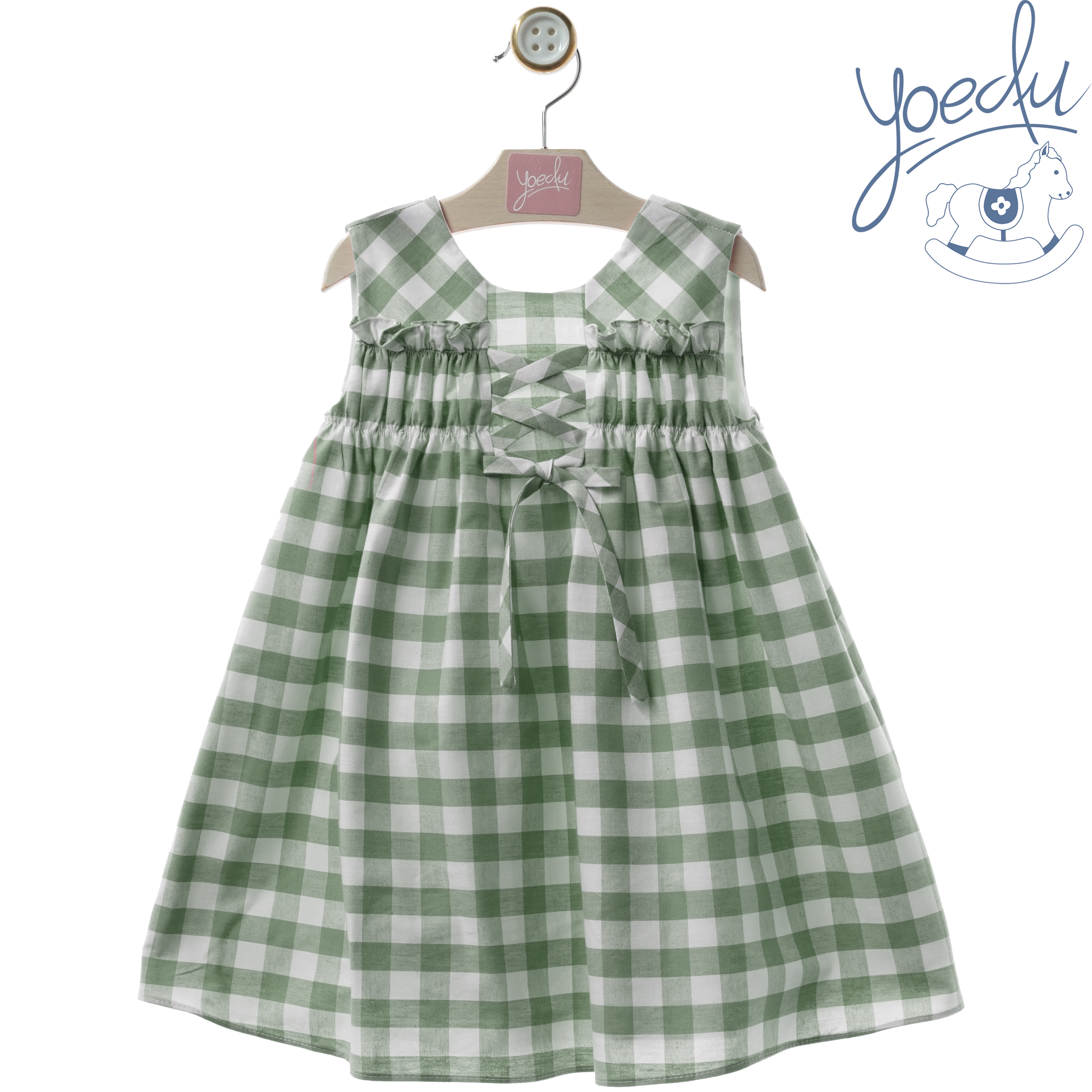 Vestido infantil de cuadritos en color verde.