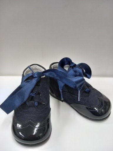 Bota de serraje y charol en color azul marino.Piel.