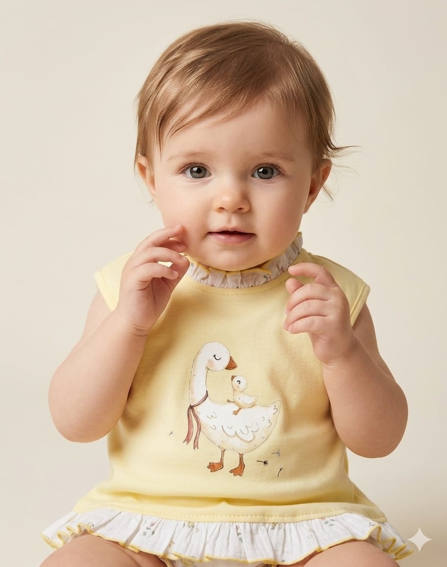 Conjunto de niña en color amarillo con un cisne.