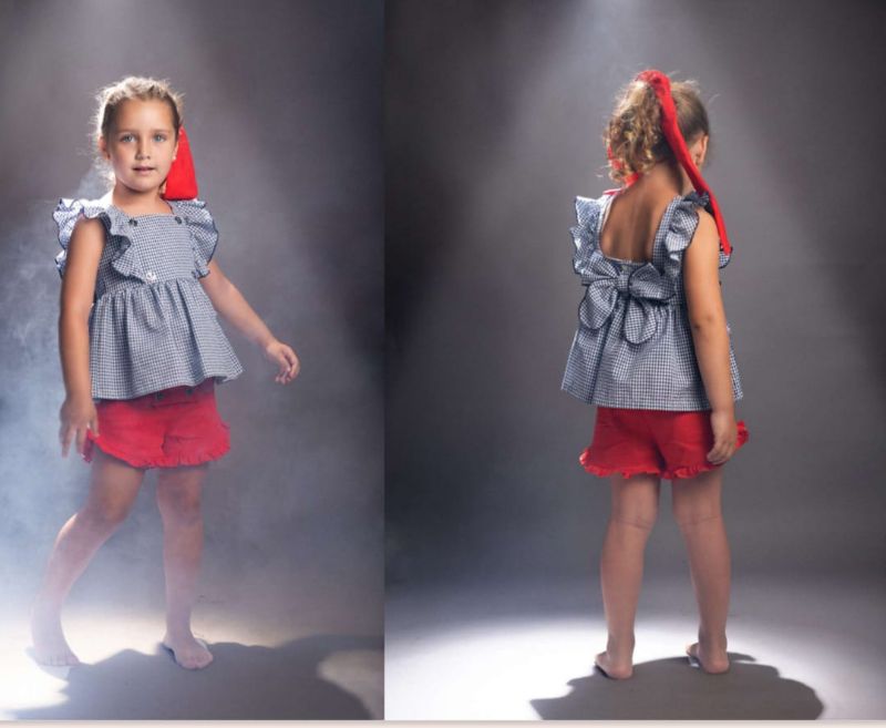 Conjunto de niña con pantalón corto y blusita en ccolor rojo.