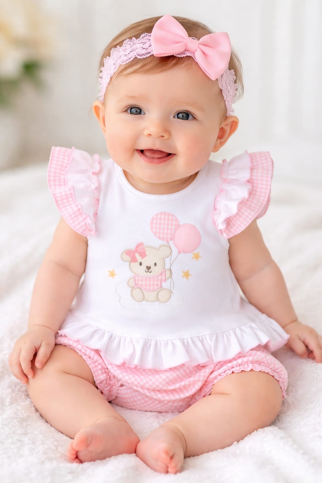 Conjunto de niña en color rosa con un osito.