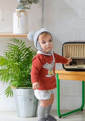 Conjunto de niño en color teja con un ratón.