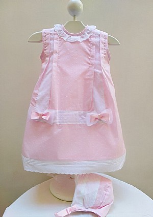 Faldón con capota rosa en batista.