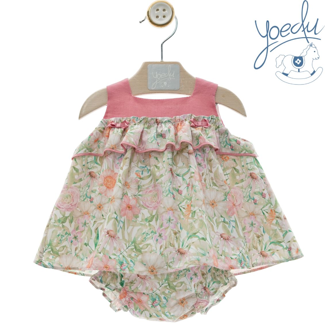 Jesusito bebé de dos piezas con florecitas en color rosa.
