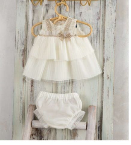 Jesusito de ceremonia de dos piezas con tull en color crudo.