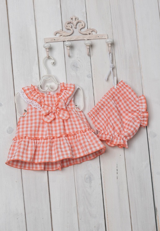 Jesusito de dos piezas con cuadritos en color naranja.