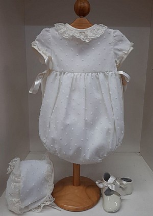 Rana con capota en color crudo con manga corta.Con cuello de puntilla.