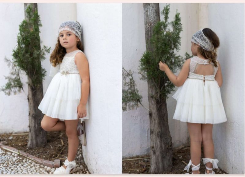 vestido de tull de ceremonia en color crudo.