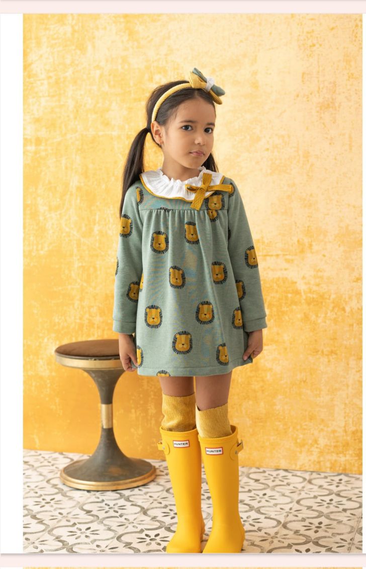 Vestido infantil en color verde con leones.Basmarti.